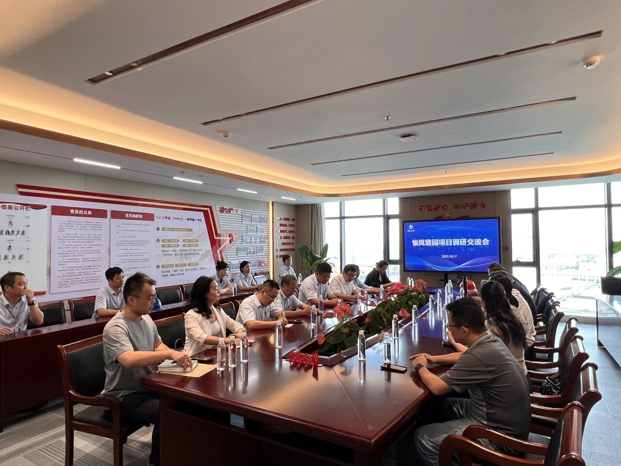 10月17日,無錫市住建局副局長施局和錫山區住建局副局長張局帶隊赴愉嵐雅園項目開展調研指導,先后參觀了項目建設工地、售樓處和裕隆健身會所,并在華方企業總部召開調研指導會議。